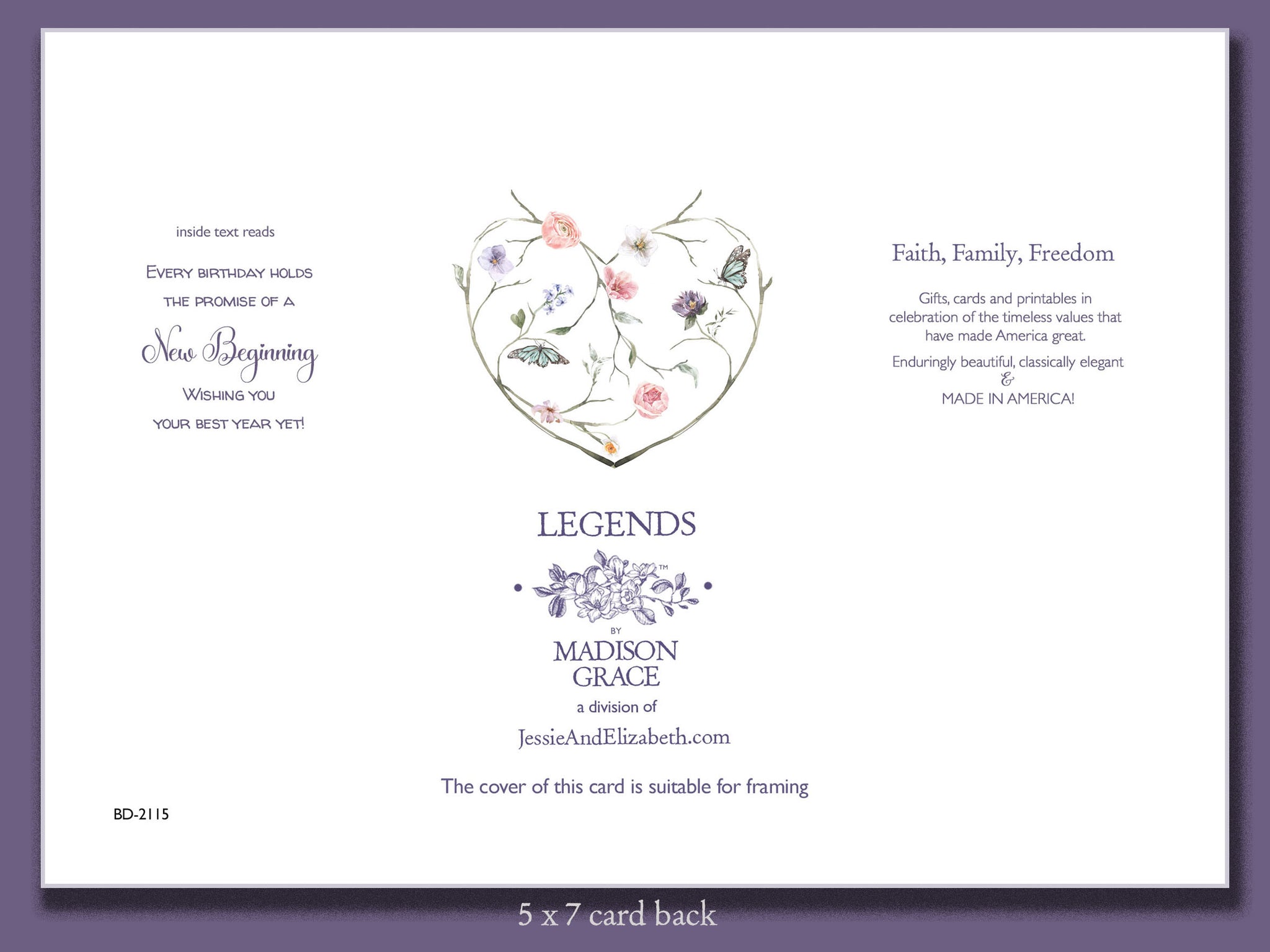 Delicately painted vines, blossoms, and butterflies form the shape of a heart on the front of this elegant birthday card, symbolizing beauty, renewal, and love. Soft watercolor tones and graceful details make it a timeless keepsake.