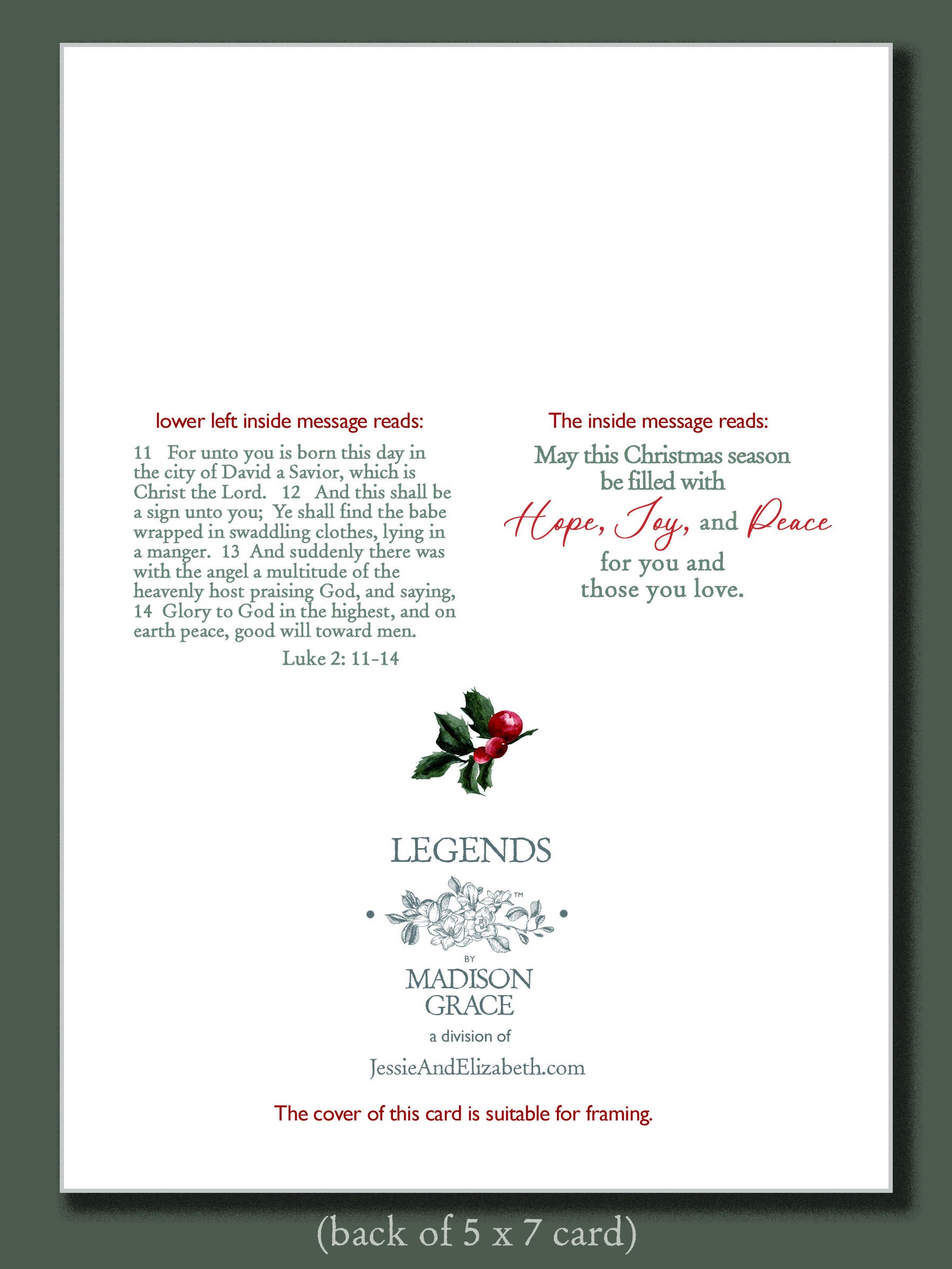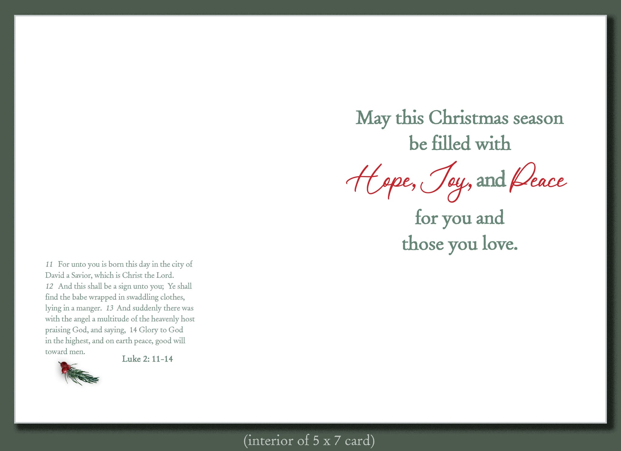 Inside, the message continues with both Scripture and a heartfelt blessing: “May this Christmas season be filled with Hope, Joy, and Peace for you and those you love.”